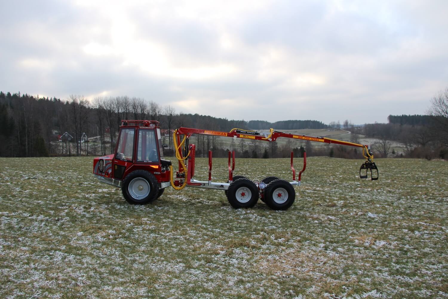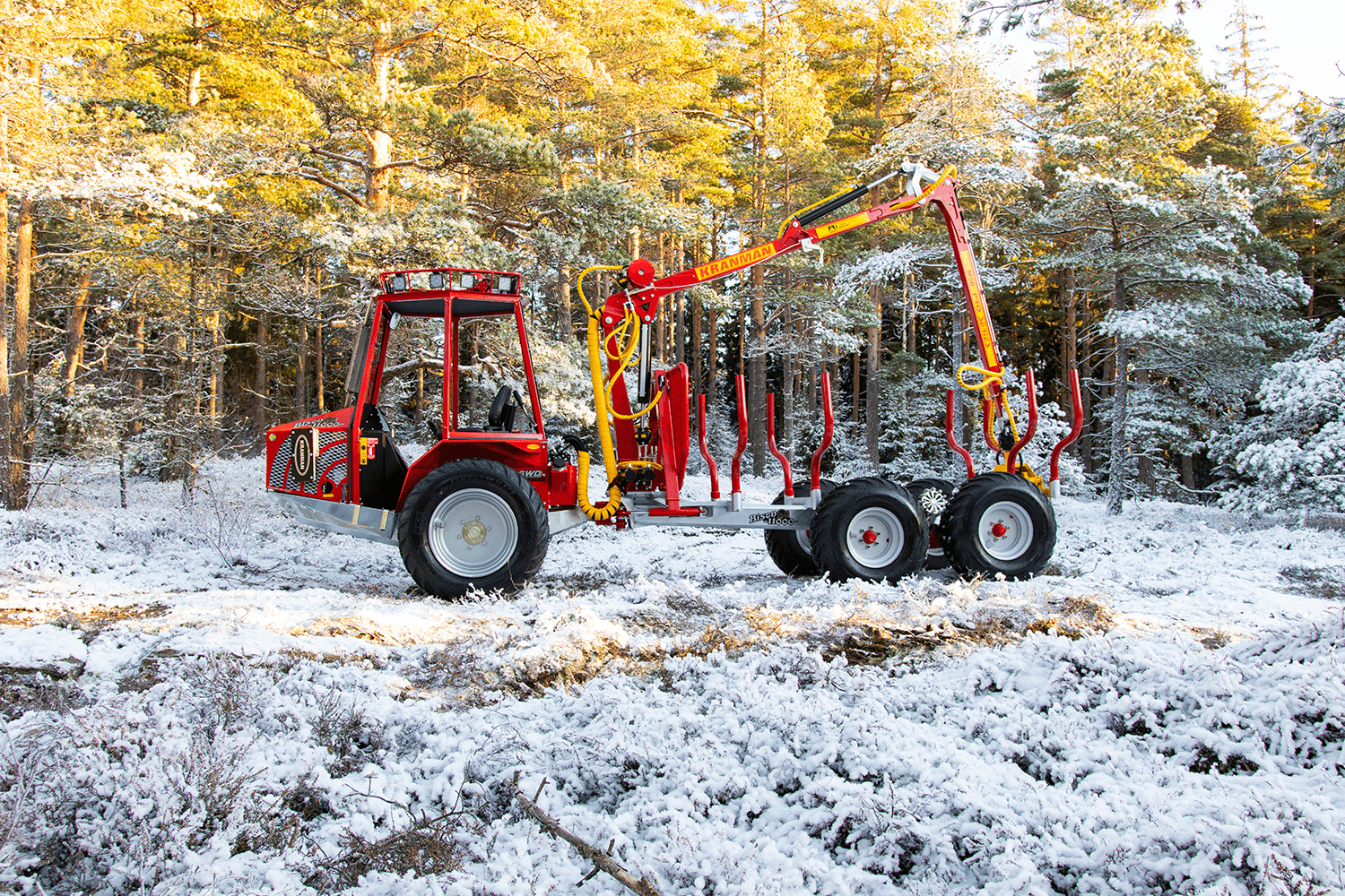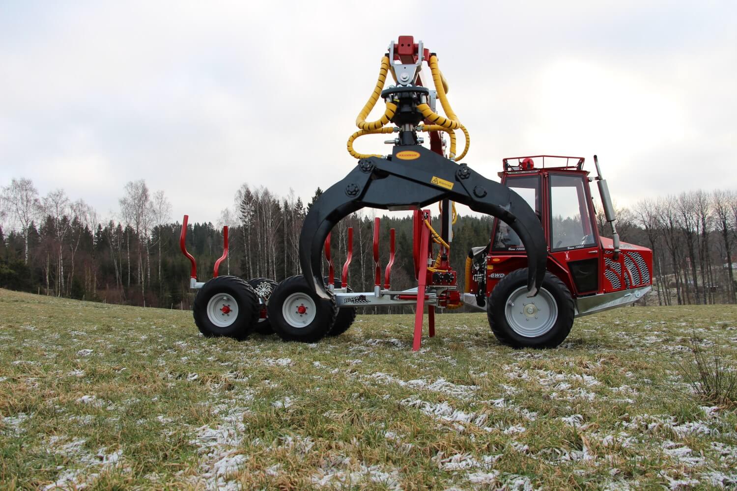 Bison 11,000 has a load capacity of 3,000 kg. The machine has hydrostatic drive. Which means that it has a drive pedal which regulates the speed. Releasing the pedal, the machine stops and stands still until you press the pedal again. The direction of travel is selected using a button next to the chair. If a double command is chosen, there is also a driving pedal in the floor at the rear. With a Bison 11,000, you do a very efficient job. You can sit backwards and drive the machine on a working lap, release the driving pedal, load the log and when you press the pedal again, you’re off. This without having to drop down the machine at low RPM, put in neutral or pull the handbrake.